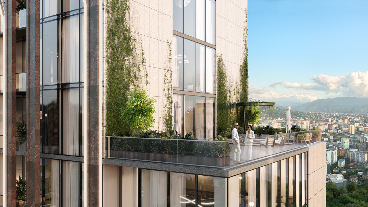 - Панорамные окна в пол, потолки 3 метра