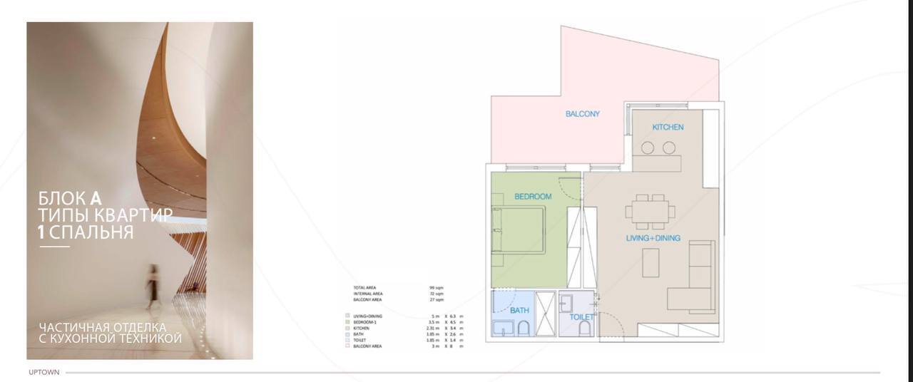 1 BED = гостиная + спальня