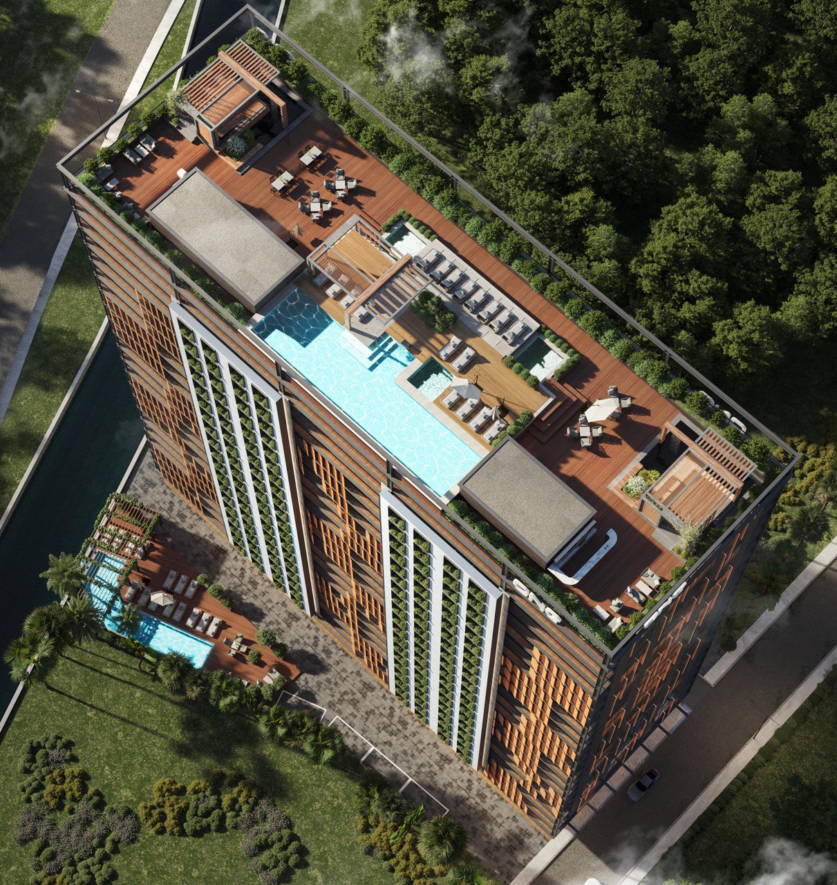 - Летний бассейн и лаунж-зона на крыше